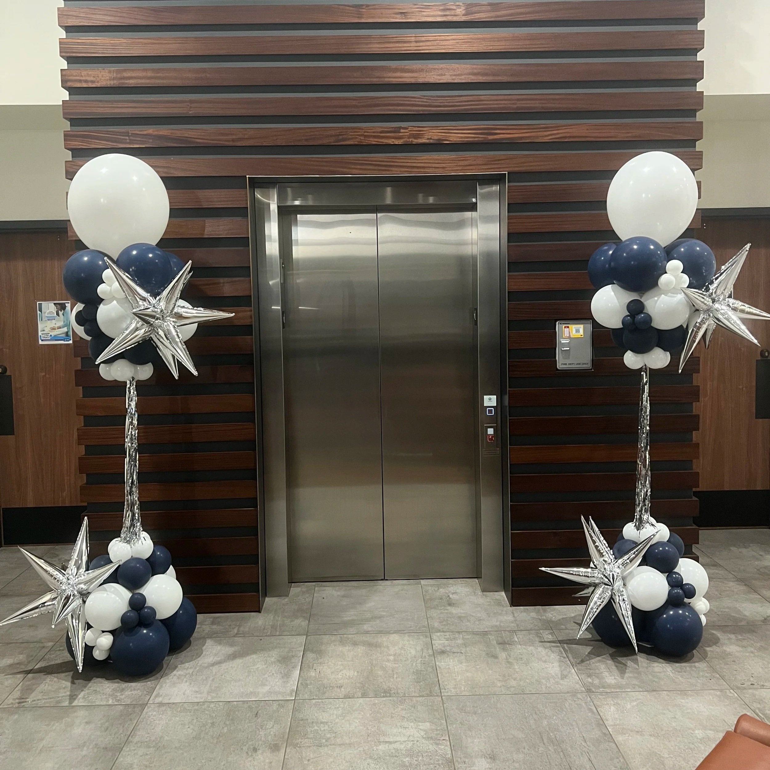 We started with a custom 10x10 step-and-repeat balloon backdrop, perfect for photos and welcoming guests into the space. Inside the main speaker room, we installed organic balloon columns that added height, texture, and a polished look to the stage area. To help guide guests throughout the venue, we also incorporated floating balloon columns as room markers — blending functionality with design. 🎈✨